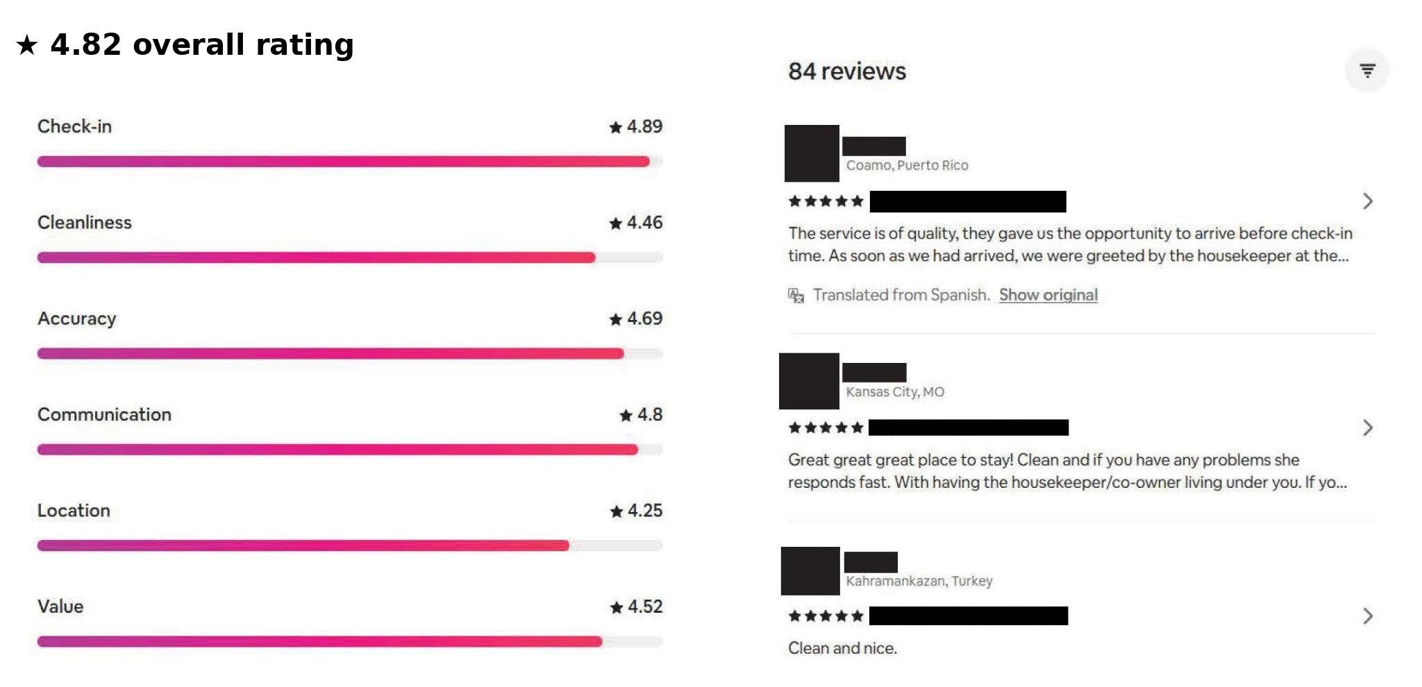84+ verified guest reviews within a 12 month period with strong ratings across cleanliness, communication, and overall experience — proof of consistent performance and guest satisfaction. This is the level of quality we bring to every property to drive better reviews, repeat bookings, and higher revenue.